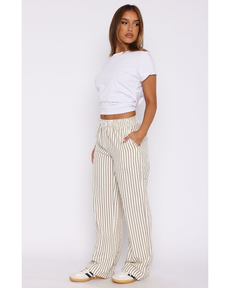 White Fox Wondering About You Striped Pants Cream/Chocolate