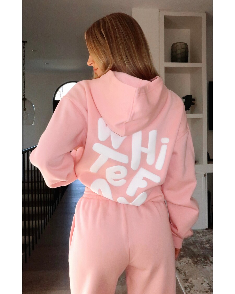 restez Mignon Et Confortable Dans Le Nouveau Sweat Capuche Surdimensionn Standard En Rose. Ce Sweat Capuche Est Conu Avec Un Ajustement Surdimensionn, Le Rendant Parfait Pour Un Look Dtendu Et Dcontract. Le Sweat Capuche Propose Des Poignets Ctels Lastiques Et Des Ourlets Pour Un Ajustement Bien Ajust, Un Capot Confortable Et Un Tissu Molle Moulant Qui Ajoute Un Confort Supplmentaire. L'avant Affiche Un Logo Lgant Puff Print, Tandis Que Le Dos Central Prsente La Marque De Signature.