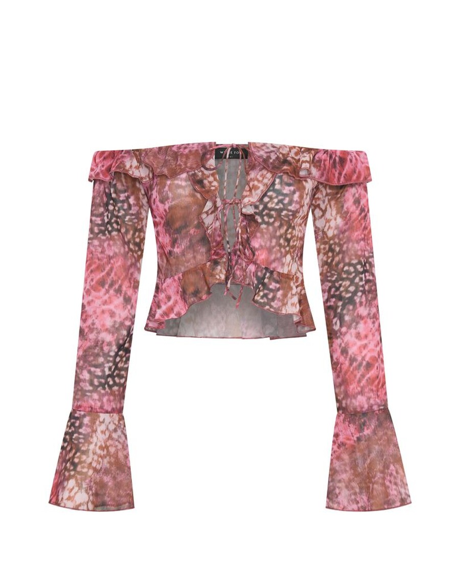 Vrăjirea Cu Mânecă Lungă Gratuită Este Concepută Pentru Cei Care Doresc Să Iasă în Evidență. Acest Top Elegant Prezintă Un Design Off-um-umare, Cu Detalii Fragede, Mâneci Lungi, Cu Un Tiv Evazat și Un Autovehicul Din Față Central, Cu Accente Fragede. Lungimea Sa Decupată și Materialul întins Asigură O Potrivire Măgulitoare.