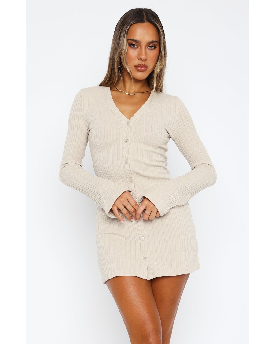 White Fox Live In The Moment Long Sleeve Mini Dress - Stone